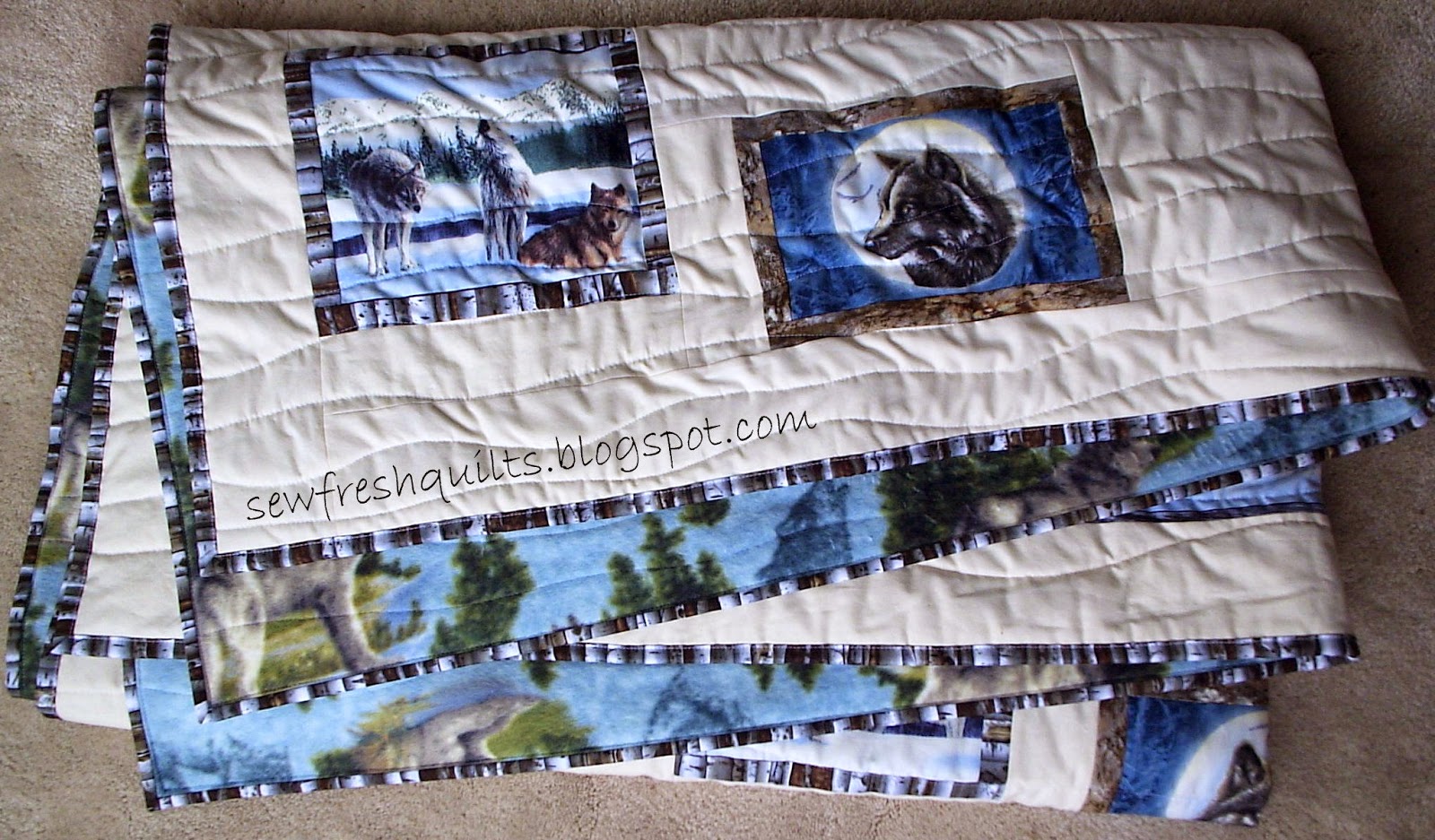 Winter Wolves was my first attempt at Organic Wavy Line Quilting. This quilt was my also my first time quilting with fleece and I felt that quilting edge to edge would reduce the chances of shifting and puckering.