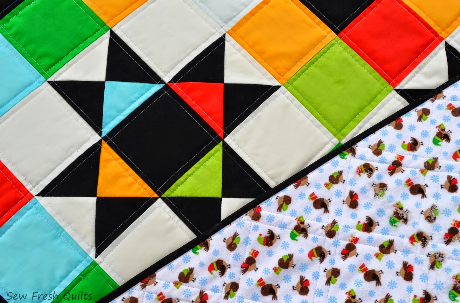 Still not convinced? Here are two examples of the same quilt pattern. Quilted using Straight Line Quilting. Ohio Stars in Holiday Hoot was quilted using plain white thread along the seam lines.